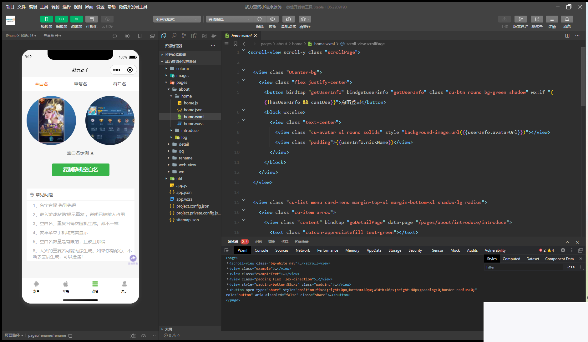 王者荣耀战力查询小程序除了功能外,其UI设计也非常优美。此外,该小程序还充分考虑到用户输入的重复名、空白名和符号名等情况,给予了相应提示和处理。在小程序中还设置了广告位,同时通过用户登录云端实现了远程控制