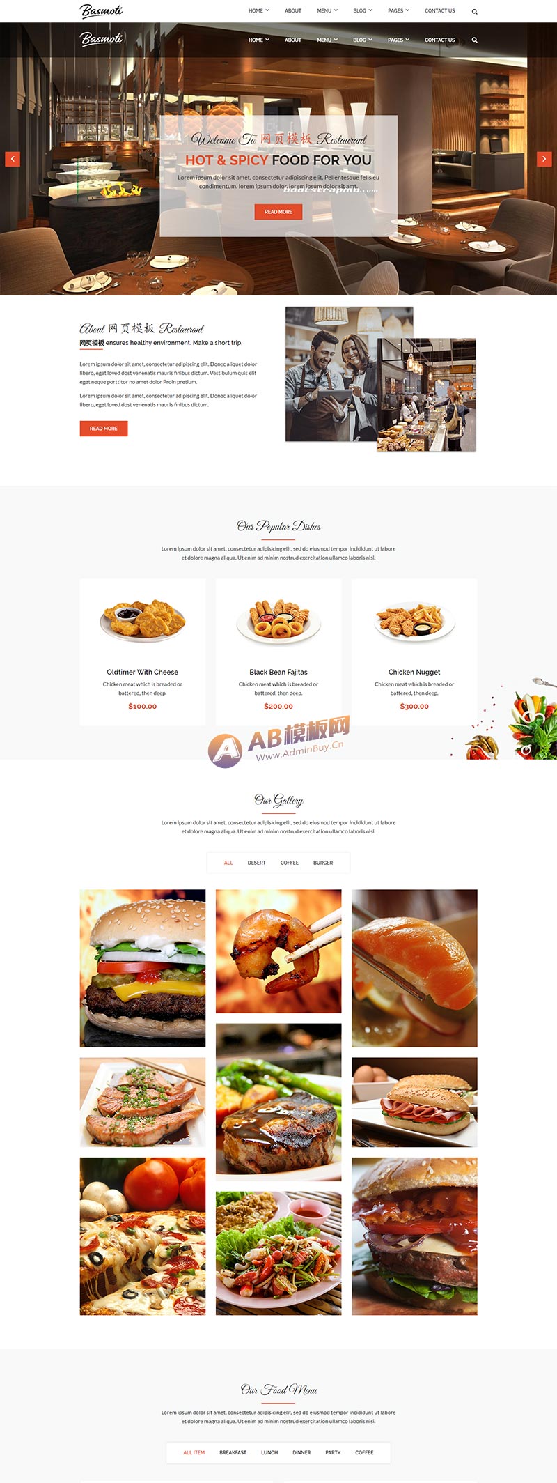 大气的餐饮美食餐厅网站Bootstrap模板。适合各种各样的餐厅,食物商店,咖啡店,种族、快餐,休闲,休闲餐饮、高端休闲,美食,烧烤店可以使用这个模板。