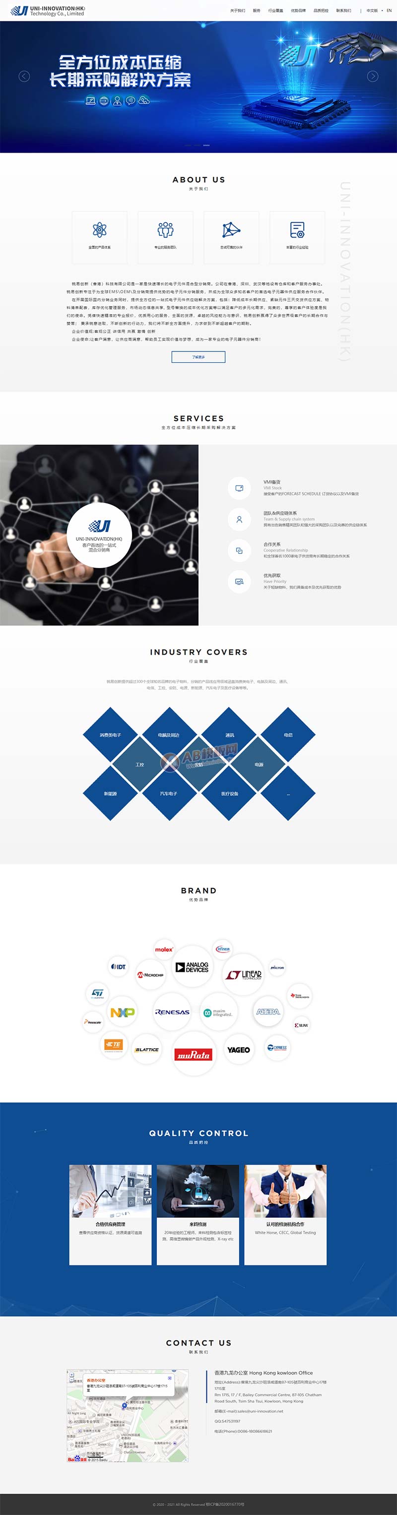 蓝色简洁的电子元件科技公司,电子元件混合型分销商企业网站模板。适用于全球EMS\\\\OEM\\\\及分销商,电子元器件分销服务网站。包括主页、内容列表页、内容详情页,分屏加载动画等总共8个html页面下载。