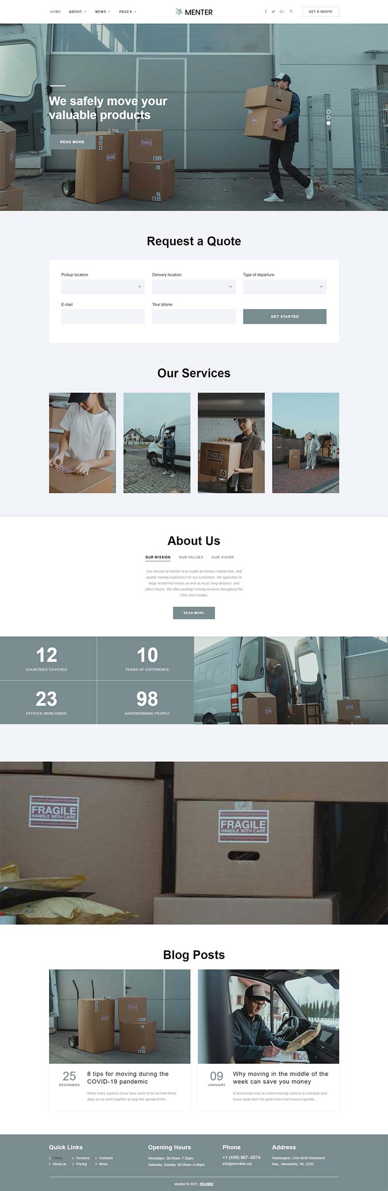 基于bootstrap框架构建,响应式的货物搬运,快递配送,搬家公司网站模板下载。