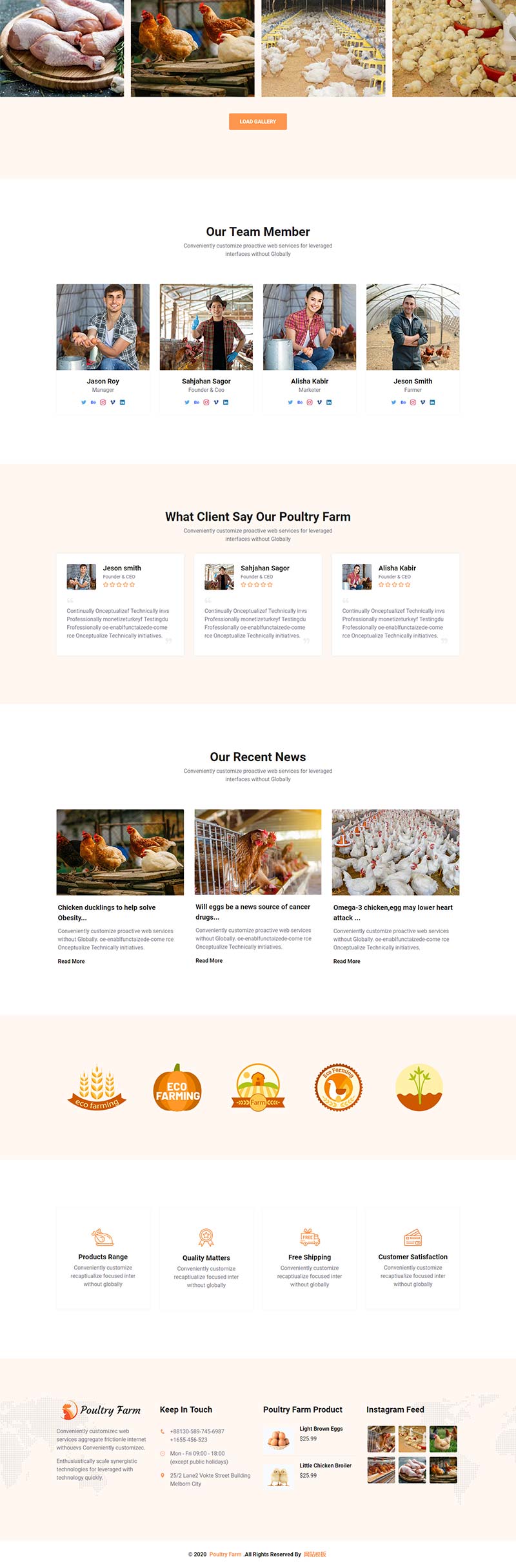 一款橙色响应式的有机家禽/家禽养殖场/农业养殖公司网站模板。适用于:农业、园艺、奶牛场、有机商店、农具、园林绿化服务、家禽或任何农业相关服务/业务网站。
