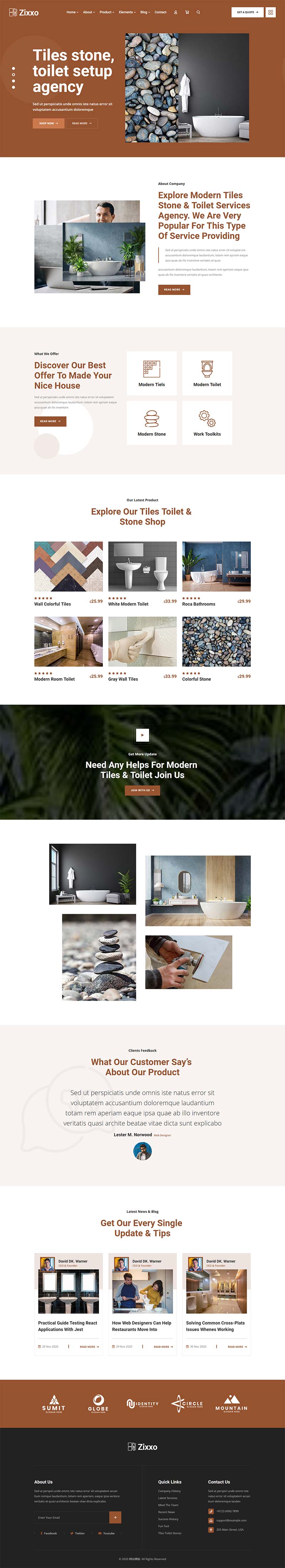 一款基于bootstrap构建,棕色大气的洗手间装饰,洗浴地板瓷砖,洗浴卫生间,洗浴设计,洗浴装饰公司网站响应式模板。