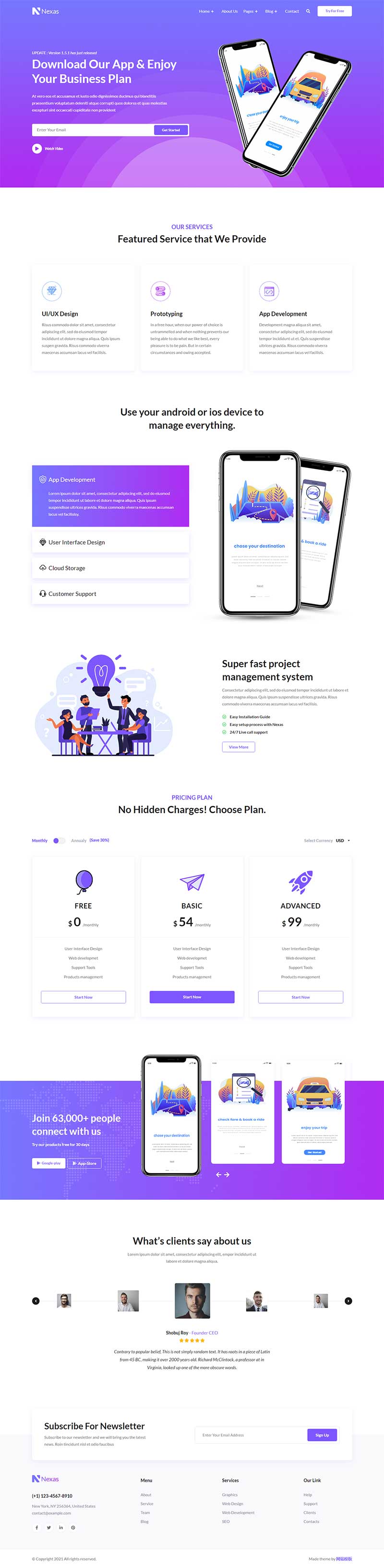 一款蓝色渐变风格的app应用软件介绍,IT软件科技公司官网HTML模板。它适用于所有创意的科技公司网站。如Saas登陆、软件登陆、创意代理、企业业务、创意工作室、搜索引擎优化业务和现代商务网站。所有HTML文件都是100%响应的&W3C HTML验证。代码以良好的格式和文档化的文件结构进行注释。