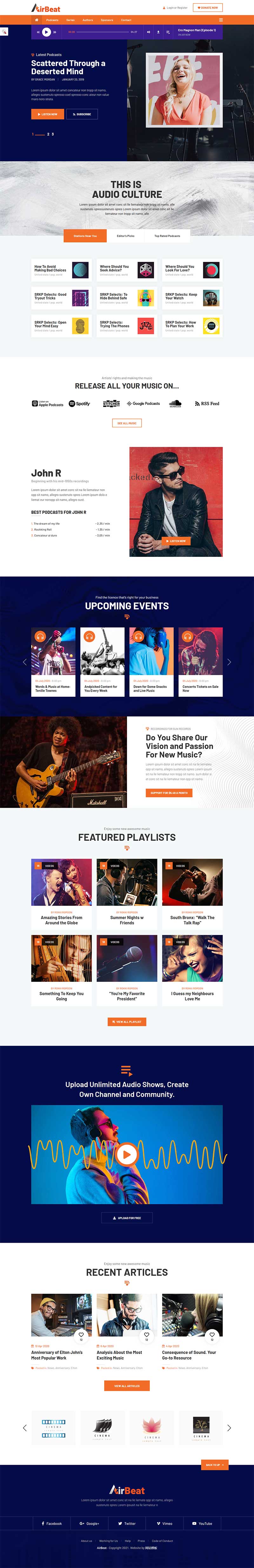一款响应式的音频试听,mp3音乐播放,音乐博客网站模板。包含3个主页演示。它是艺术家、音乐家、活动、俱乐部乐队、播客或任何在音乐行业网站选择。这个HTML在所有设备上都是完全响应式布局。具有许多独特的功能:专辑、展示、独特的媒体播放器。非常容易定制,可以根据特定的需要进行定制,HTML文件组织得非常完美,因此您可以轻松地定制所有内容。ps:所有图片仅供预览使用。