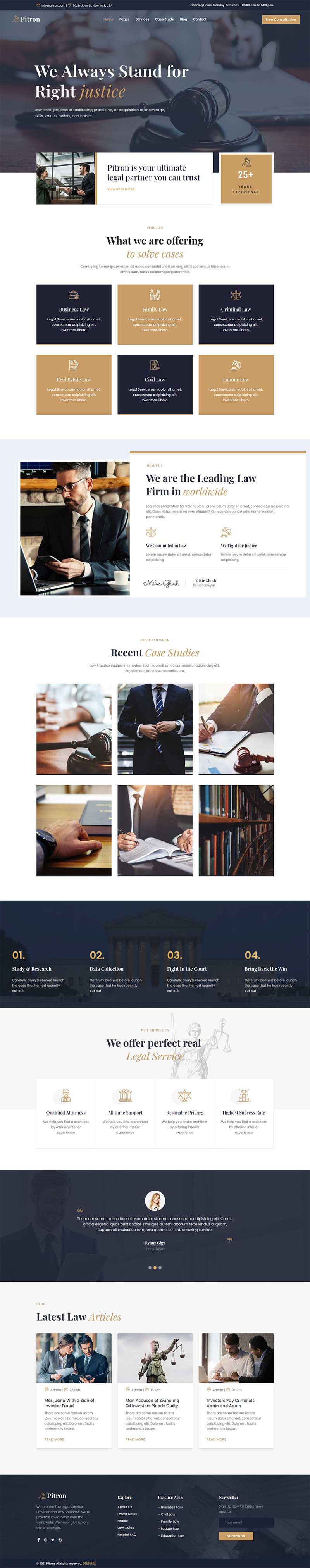 一款通用的律师事务所HTML模板。这个模板使用Bootstrap-4框架、HTML5、CSS3和jQuery插件构建。它也是像素完美的设计以及轻便和移动友好。该模板为律师事务所、律师事务所、律师事务所、律师公司、法律顾问、法律代理、司法、咨询、律师和法庭提供设计。