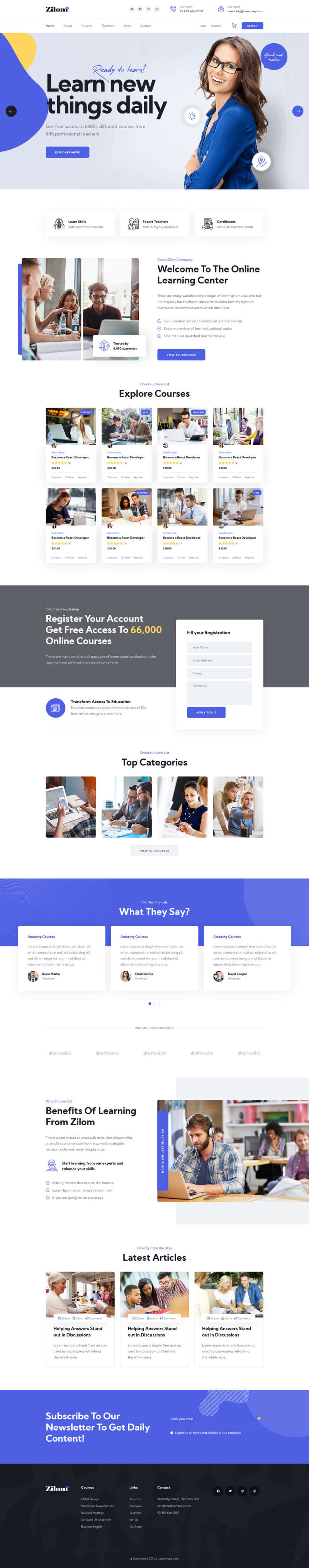 一款响应式的在线教育学习网站HTML模板。这个bootstrap模板是完美的任何学校,大学,学院,学费中心,语言,电子学习,LMS,或任何其他在线教育学习业务,公司或平台。