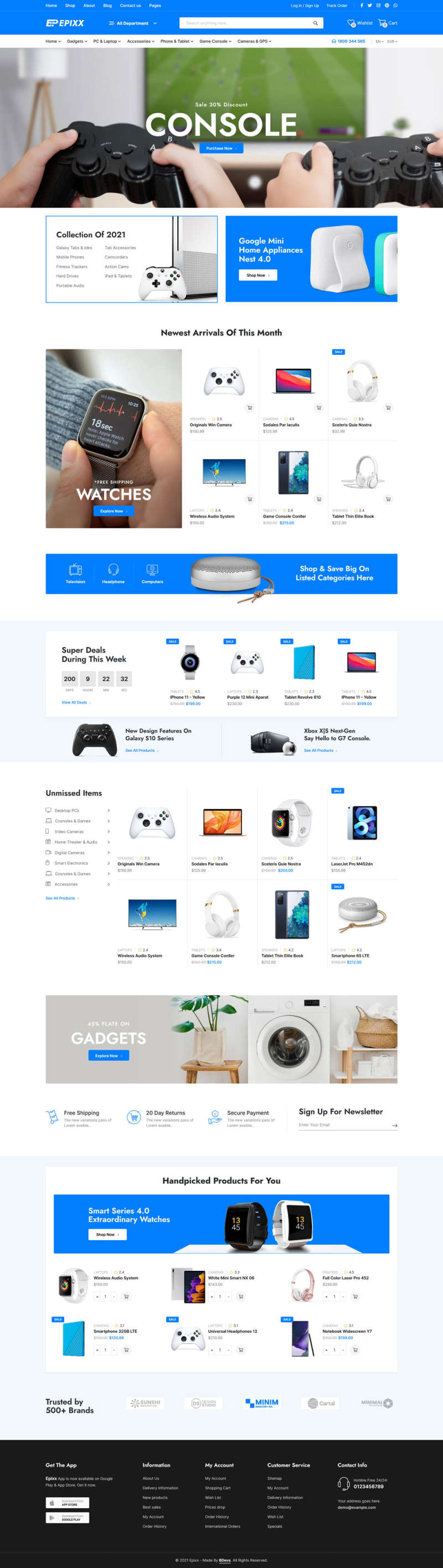一款多用途的电子商务HTML模板,可用于:电子、时尚、服装、太阳镜、配件、大型商店、手表、化妆品、衣服、包、袋商店、化妆品、时尚模板、多用途模板、手表商店。这个一个高质量且响应式的电子商务HTML5模板。由Bootstrap5、SASS、CSS3和Javascript开发。所有代码都写得很漂亮,并且经过W3C验证。在台式机、笔记本电脑、iPad、iPhone、Android手机或平板电脑上运行速度非常快,响应速度也非常快。它的超级容易定制修改。