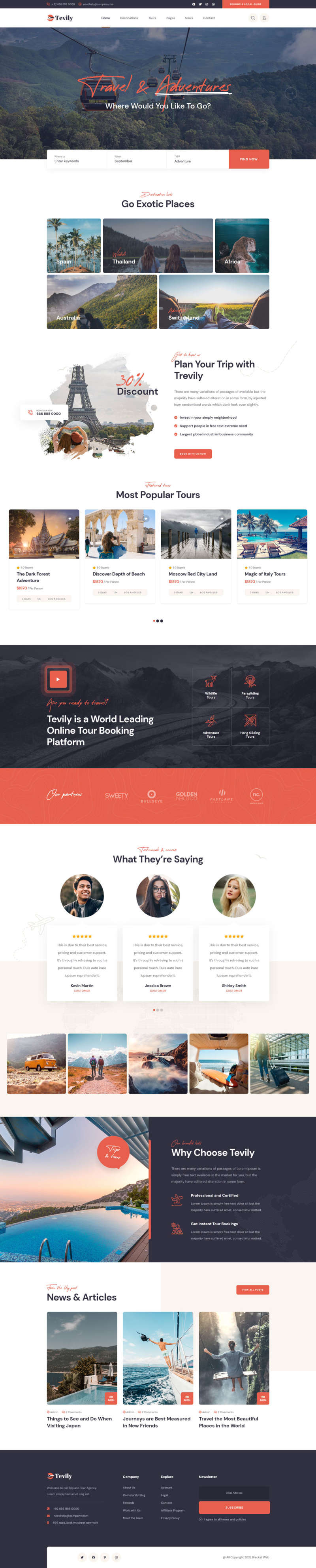 一款简洁现代化风格的旅游行业,旅游套餐预订网站HTML响应式模板。该模板专为旅游、旅行社、旅游网站、旅游运营商、旅行、目的地、旅行预订、探险以及所有其他旅游和旅游业务网站设计模板。