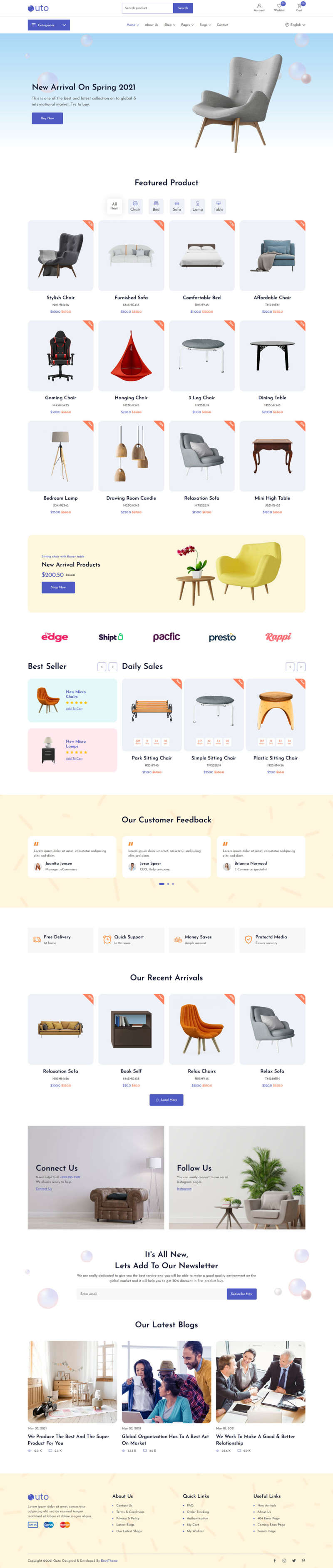 一款多用途的家具电子商务网站HTML模板。可用于:椅子,沙发,灯具,桌子,家具类商城模板。包含3个主页演示,此外,该模板还有在线留言表单、良好的注释。