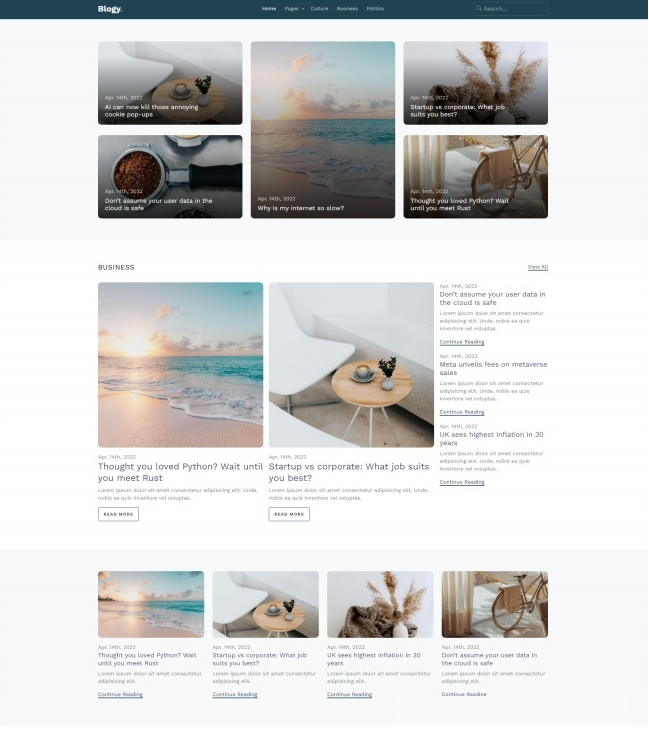 HTML5博客资讯新闻分享网站模板是一款适合分享生活、商务、旅行、时政等不同领域资讯新闻的博客网站模板下载。提示:本模板调用到谷歌字体库,可能会出现页面打开比较缓慢。