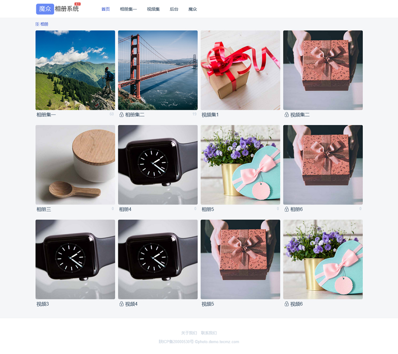 魔众相册系统是一个基于MySQL5与PHP5开发的相册系统,支持多分类、图片、视频、加密等特性,帮助您更好的搭建个人相册系统