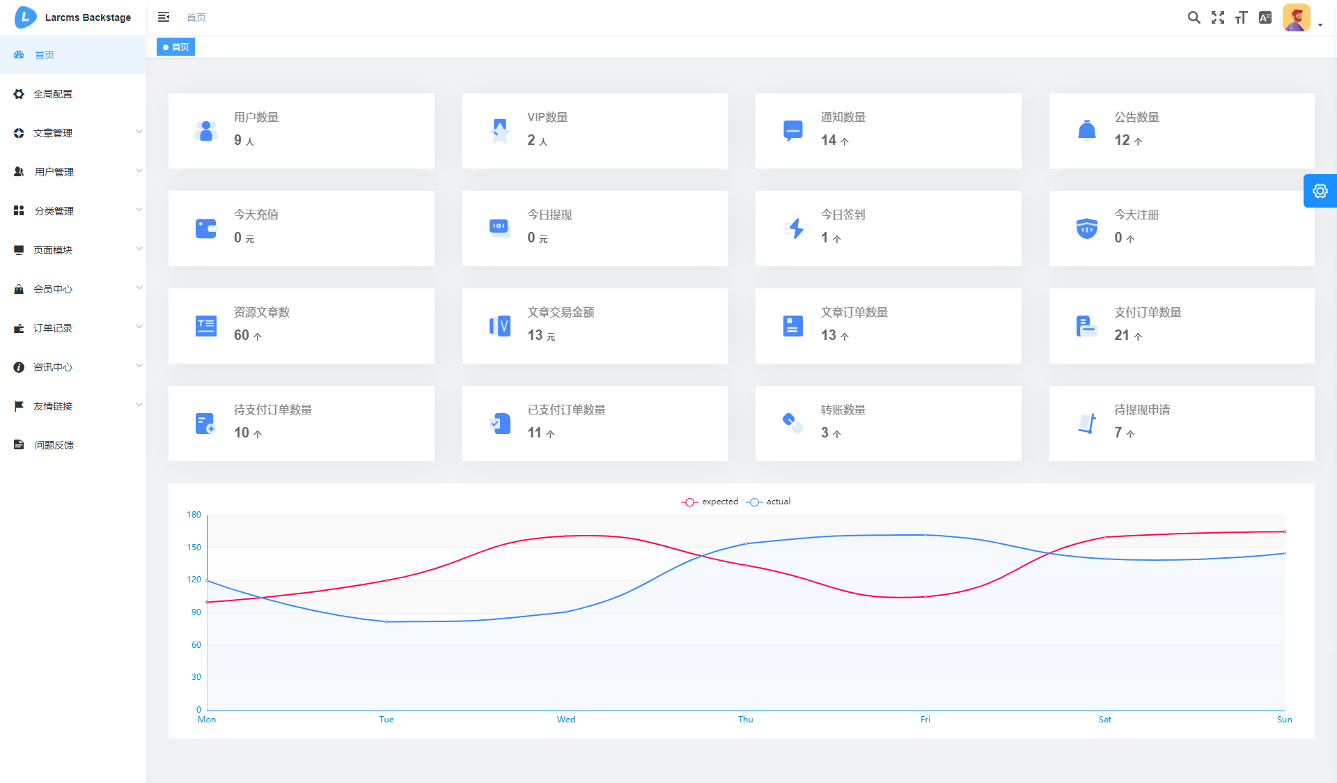 LARCMS历经1年完善,使用NUXT2+Laravel8前端后端分离全部100%开源,采用会员制度下载付费,集成支付宝微信等支付系统。