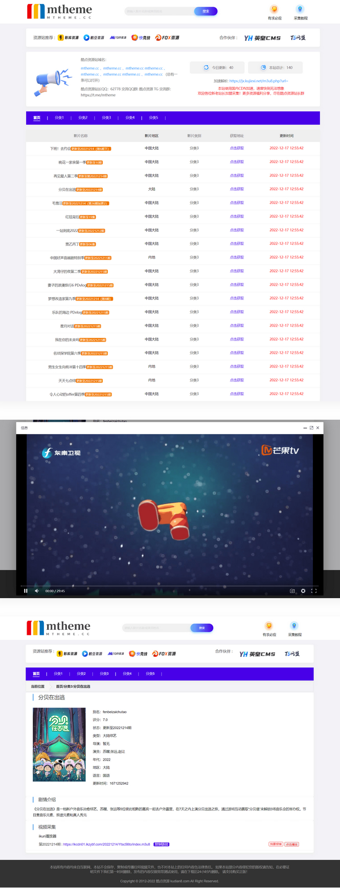简简单单写了几个页面 包括 首页、详情页、留言页、和播放弹窗! 适合拿去做资源站!