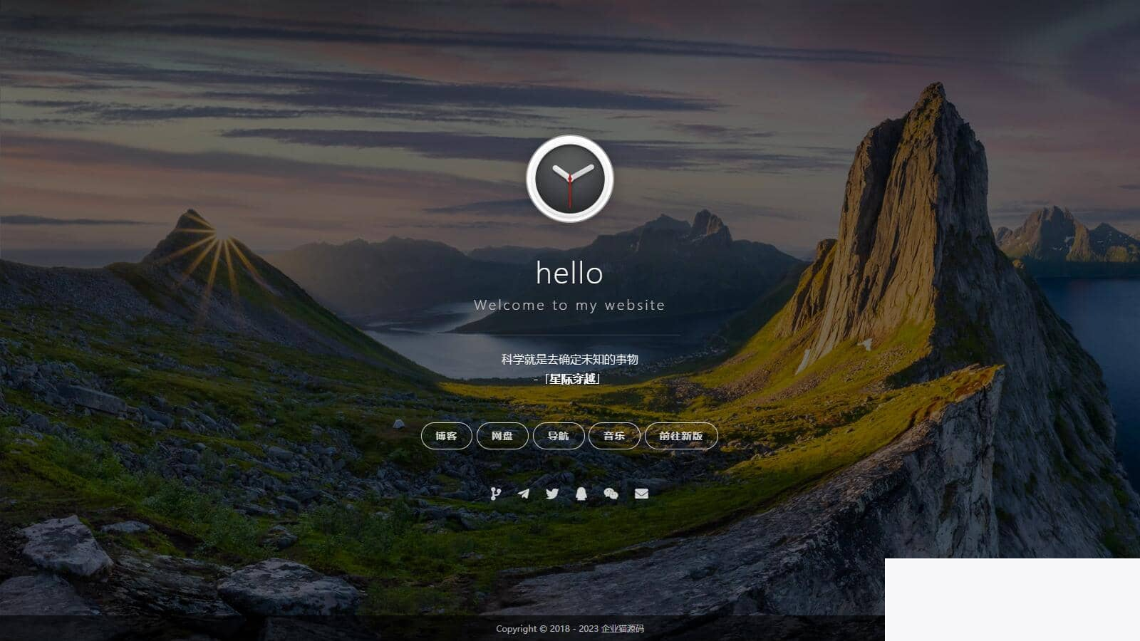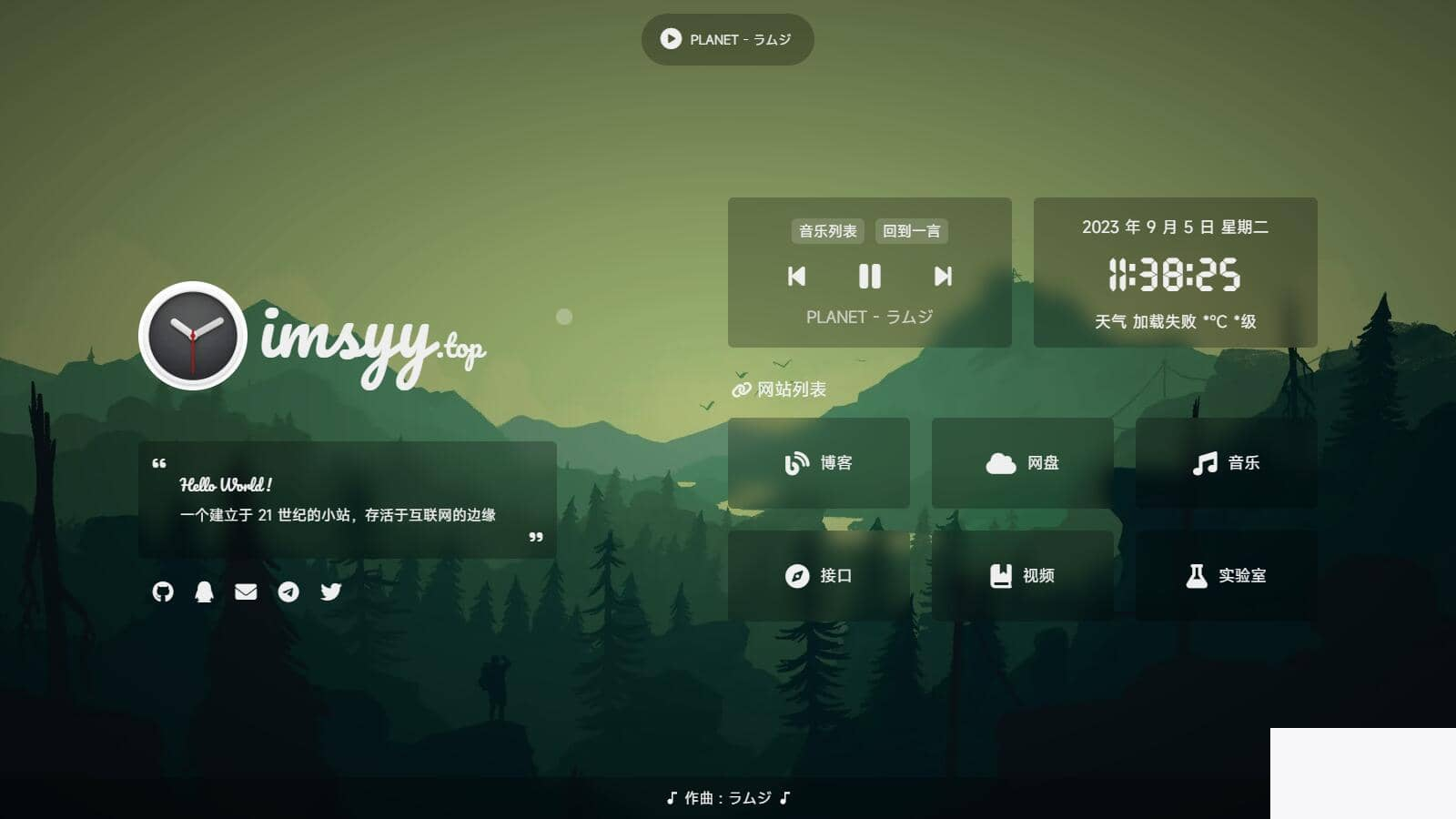 站点简介 Hitokoto 一言 日期及时间 实时天气 时光进度条 音乐播放器 移动端适配