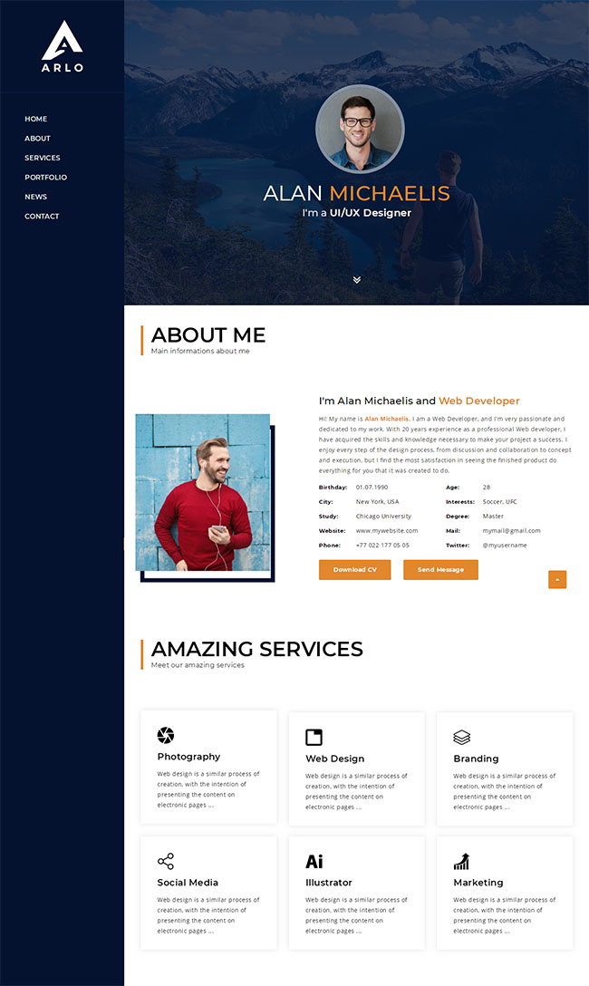 个人投资组合简历模板是一款多用途的个人简历投资组合HTML5模板下载