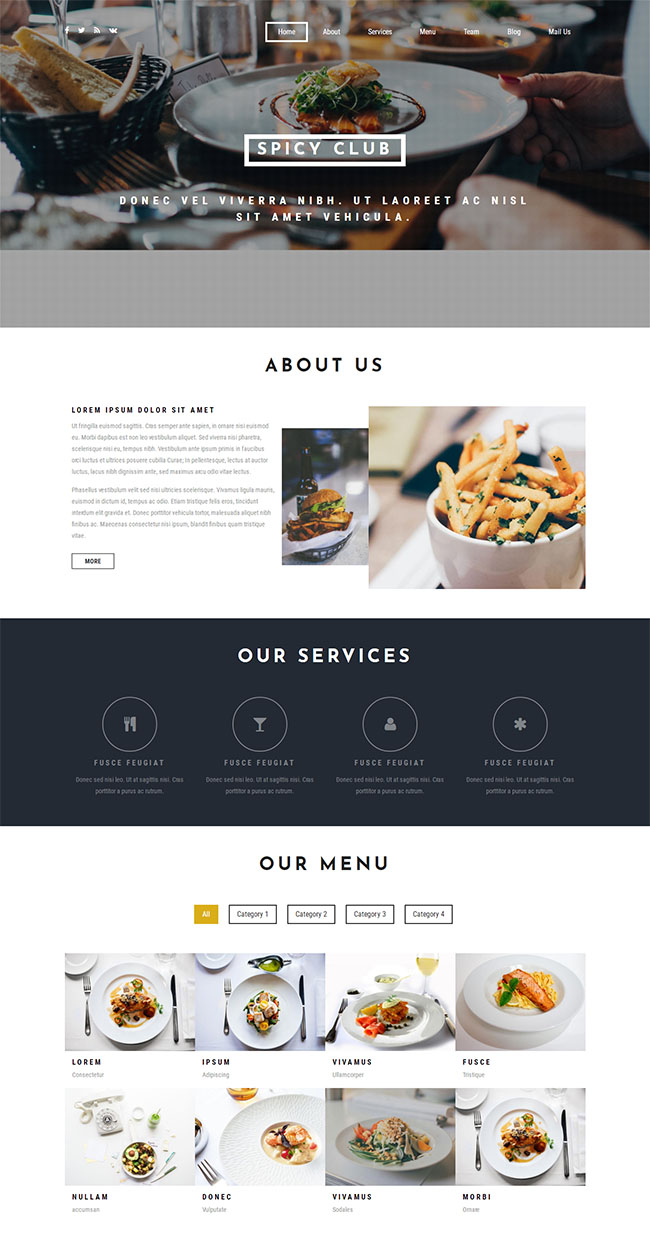 国外餐厅美食网站模板是一款大气宽屏的美食单页网站模板下载
