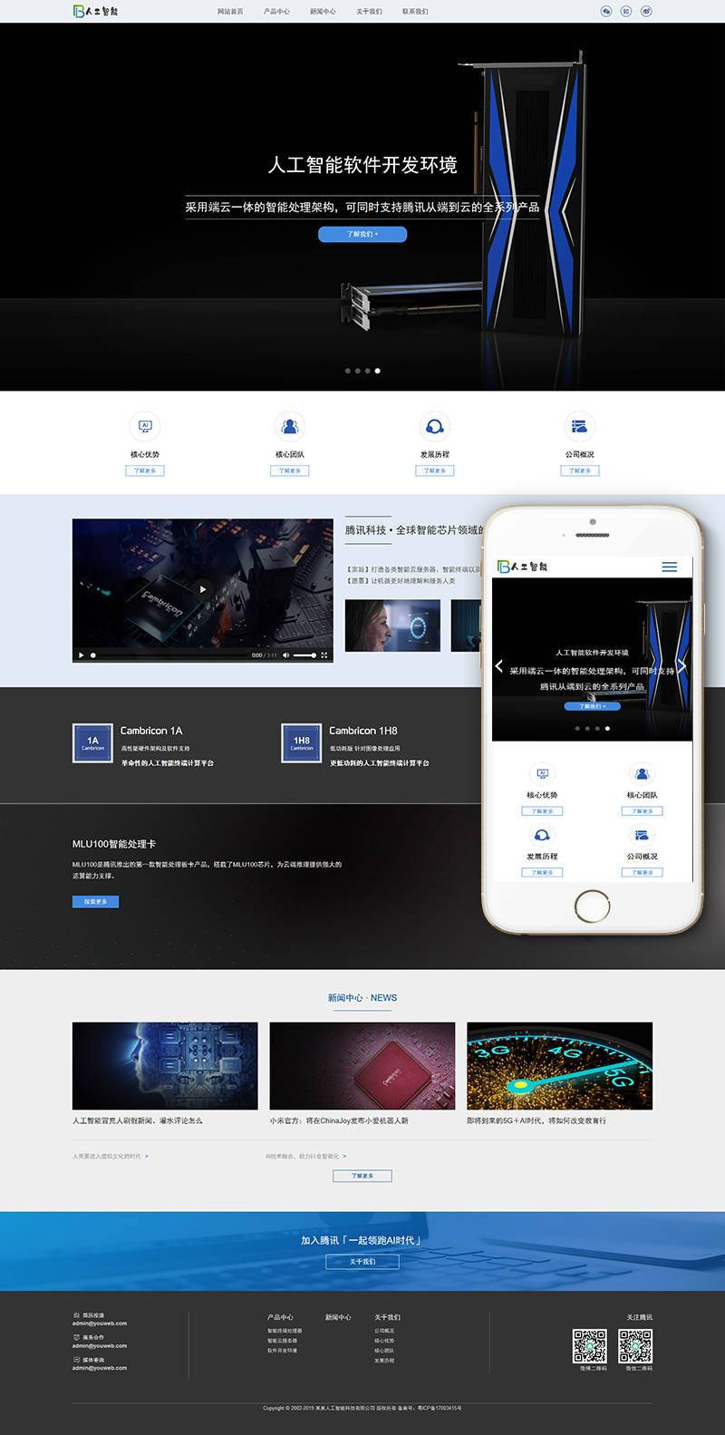 织梦最新内核开发的模板,该模板属于企业通用、HTML5响应式、人工智能、AI、智能芯片类企业使用,一款适用性很强的模板,基本可以适合各行业的企业网站!