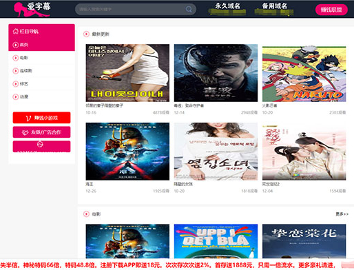 分享苹果cmsv10影视系统左侧导航栏PC模板,看截图就知道适合什么类型网站,你懂的~~~