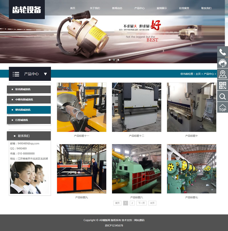 3、适用于机械设备网站源码、齿轮减速机织梦模板;