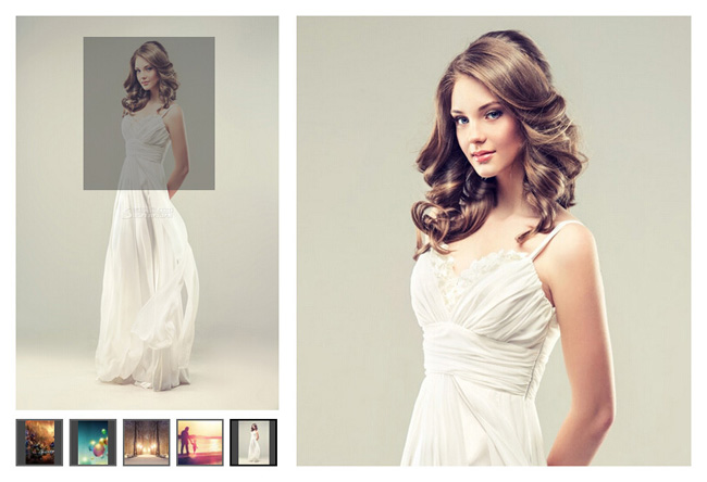 jquery图片放大镜插件是一款简单实用的jQuery图片放大镜效果,点击缩略图可以切换大图,鼠标划过大图出现放大镜图片,可拖动放大镜区域查看图片细节,类似淘宝放大镜代码,适用于电子商务网站使用。