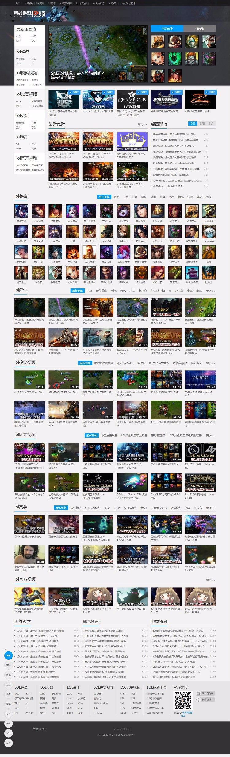 是92game最新制作的LOL英雄联盟7K7K游戏视频解说网站源码,本源码采用帝国cms7.2为内核,界面大气没的说,安全可靠,附带火车头采集规则,采用火车头7.6破解版全自动采集,无需人工管理,