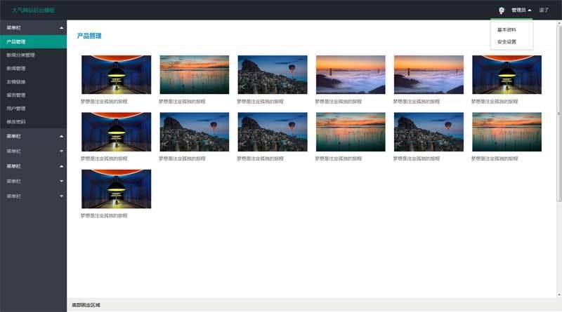 基于layui的网站后台模板,页面入口是index.html.采用iframe,必须从index.html进入,否则看到的页面没有左边的菜单,包含产品管理,新闻分类,资讯管理,产品管理,用户管理,用户留言等页面,(里面包含自己封装的一套插件,弹出层,confirm,分页,消息框等)