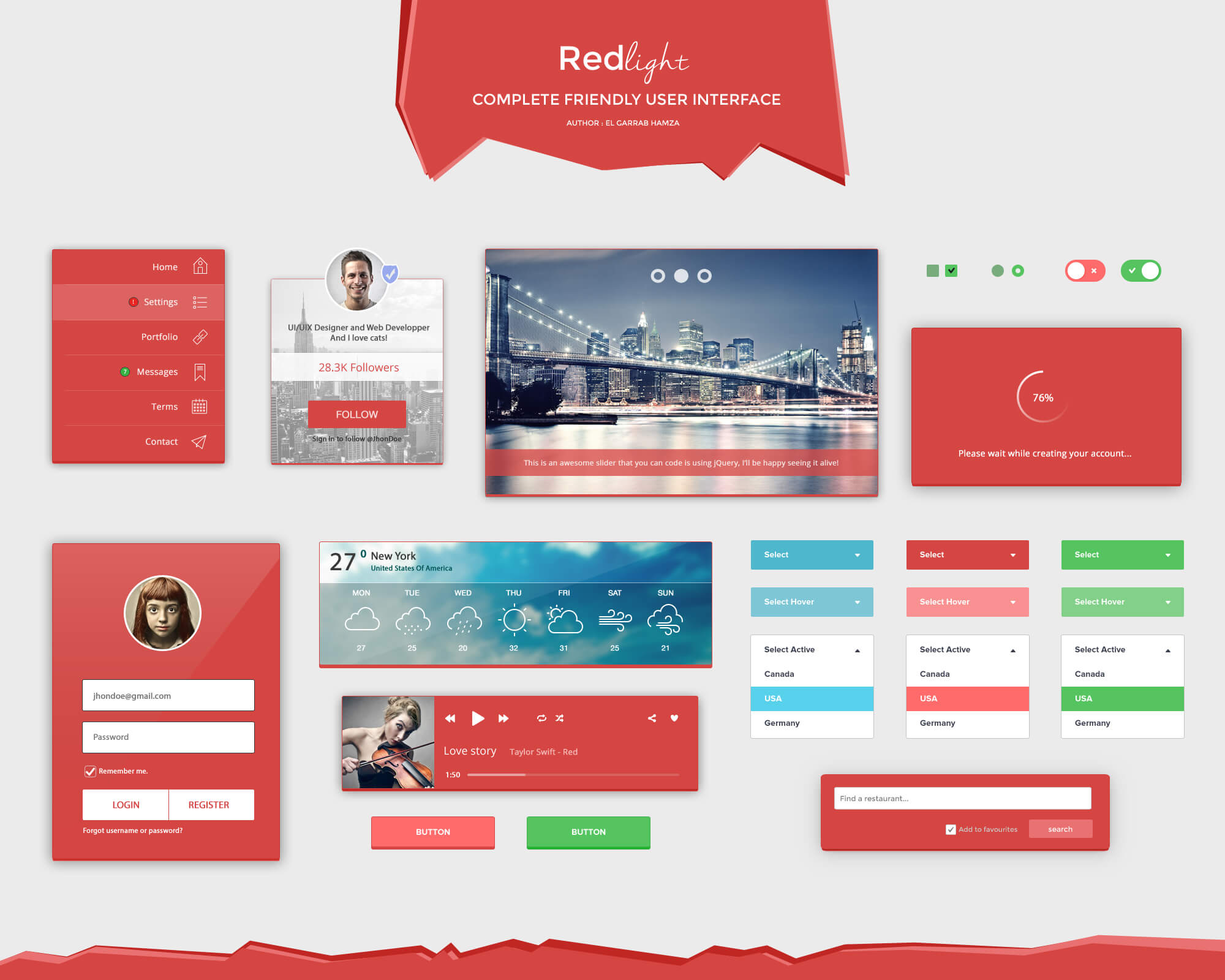 红光-完整友好的用户界面 UI设计 PSD素材 声明:本站所有文章,如无特殊说明或标注,均为本站原创发布。任何个人或组织,在未征得本站同意时,禁止复制、盗用、采集、发布本站内容到任何网站、书籍等各类媒体平台。如若本站内容侵犯了原著者的合法权益,可联系我们进行处理。