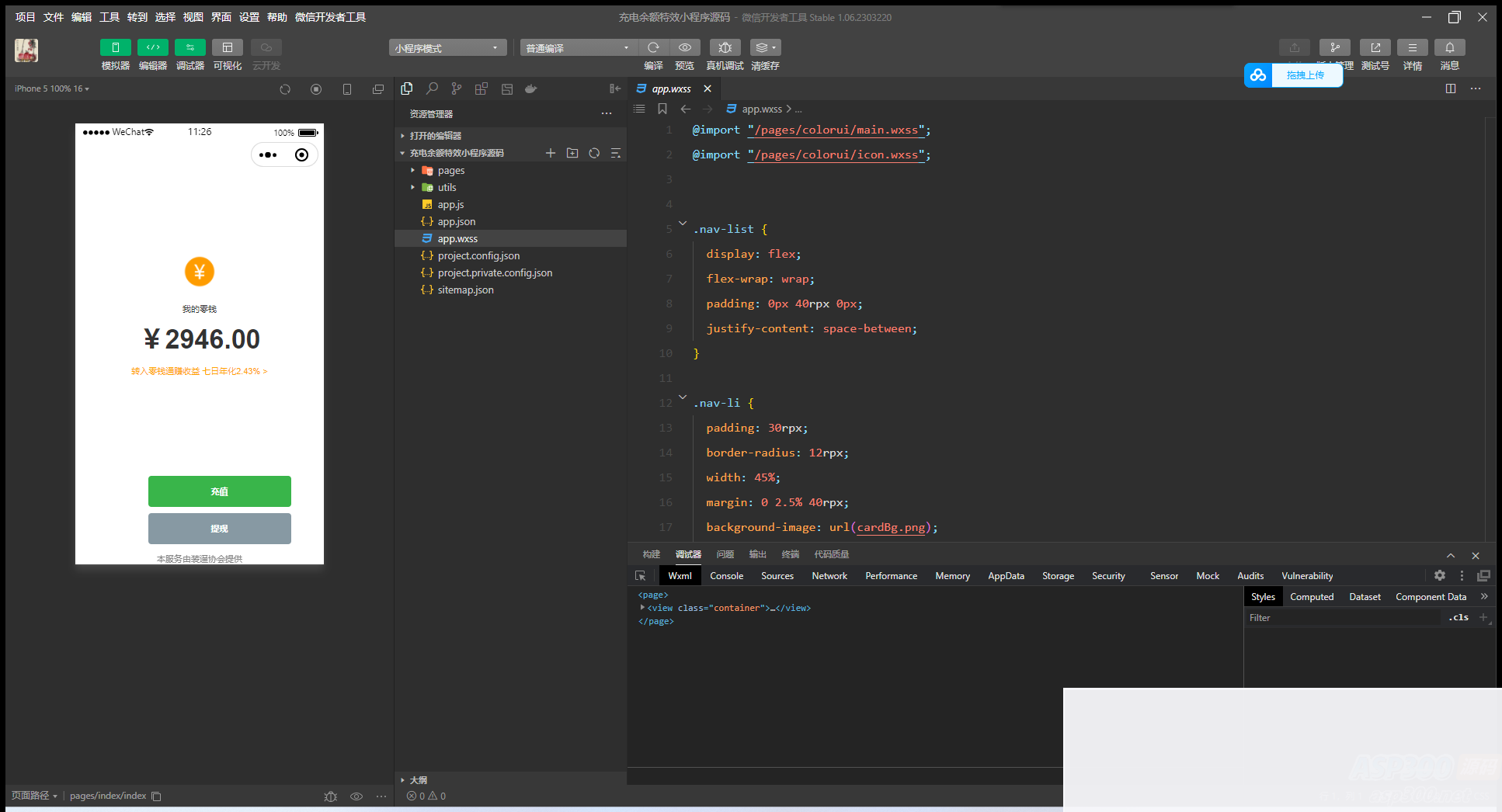 这是一款有趣的微信余额充电器特效小程序源码,用户可以在模拟自己的微信余额的同时,插上手机充电器,看着余额随着充电而增长,给人一种欣喜的感觉。 不过需要提醒大家的是,该小程序仅供娱乐和学习交流使用,不是真实的余额,所以请勿将其用于其他非法用途。