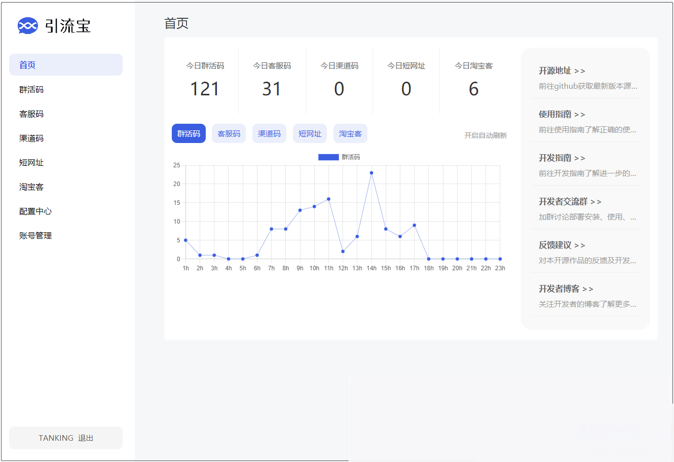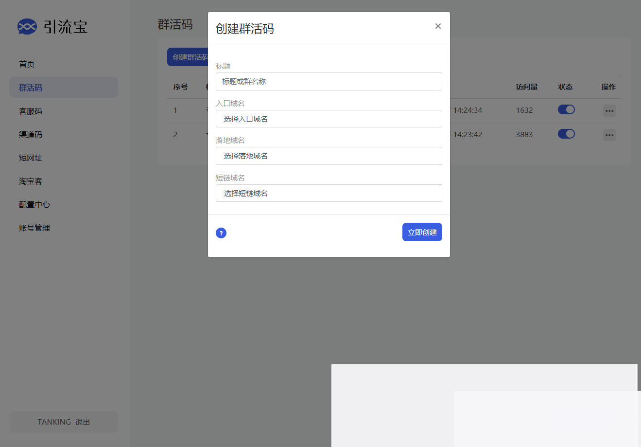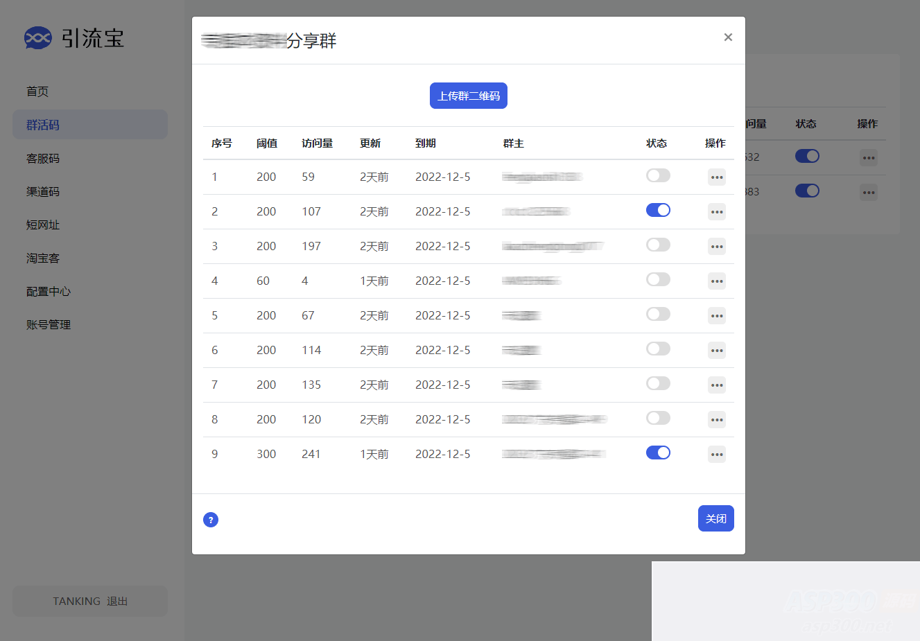 2. 查看群活码访问量、各群访问量、到阈值自动切换下一个群