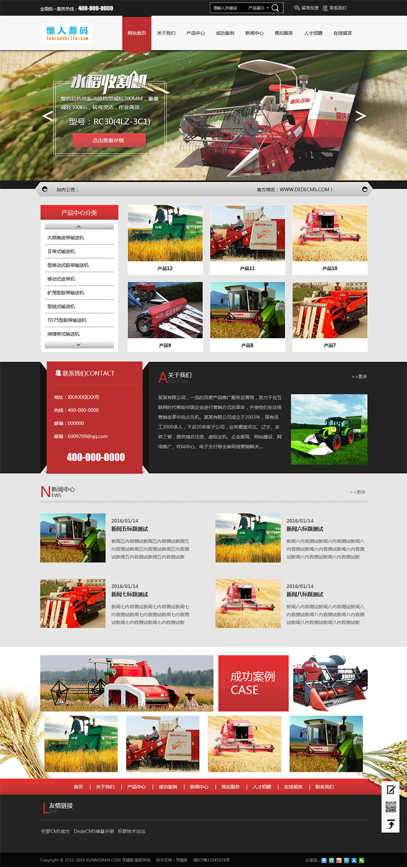 织梦dedecms收割机农业机械设备公司网站模板(带手机移动端) 声明:本站所有文章,如无特殊说明或标注,均为本站原创发布。任何个人或组织,在未征得本站同意时,禁止复制、盗用、采集、发布本站内容到任何网站、书籍等各类媒体平台。如若本站内容侵犯了原著者的合法权益,可联系我们进行处理。