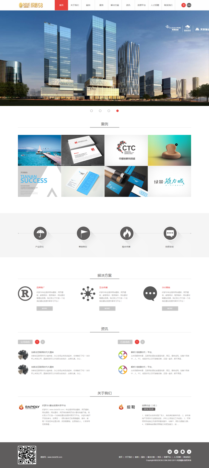 文化品牌传播类企业织梦模板,效果相当的炫酷,相当简洁大气高端,模板简单,全部已数据调用,只需后台修改栏目名称即可。