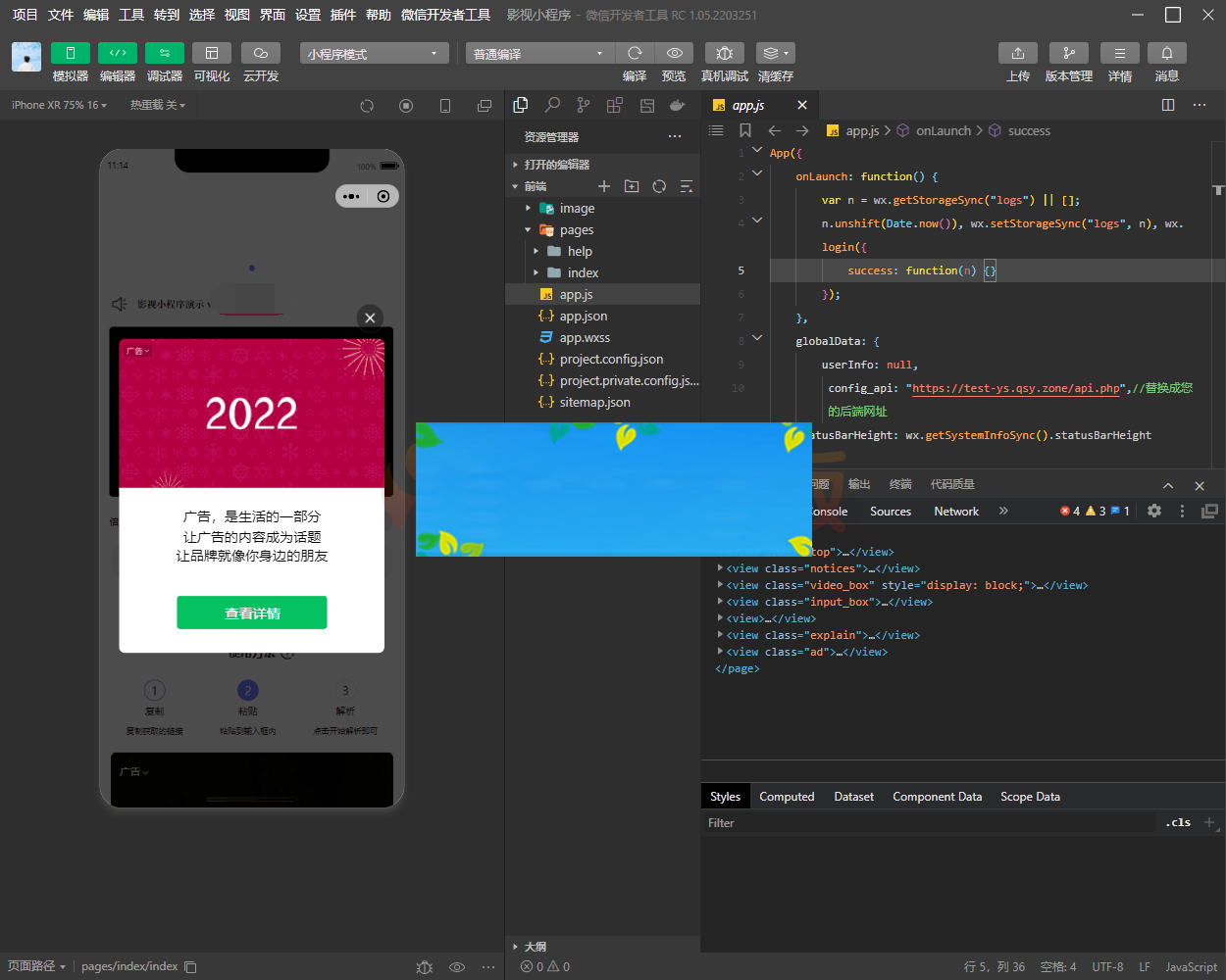 简易影视小程序,可对接标准的JSON接口,带流量主,程序内含流量主:激励广告,原生广告,首页封面广告,插屏广告。后台可自定义修改。