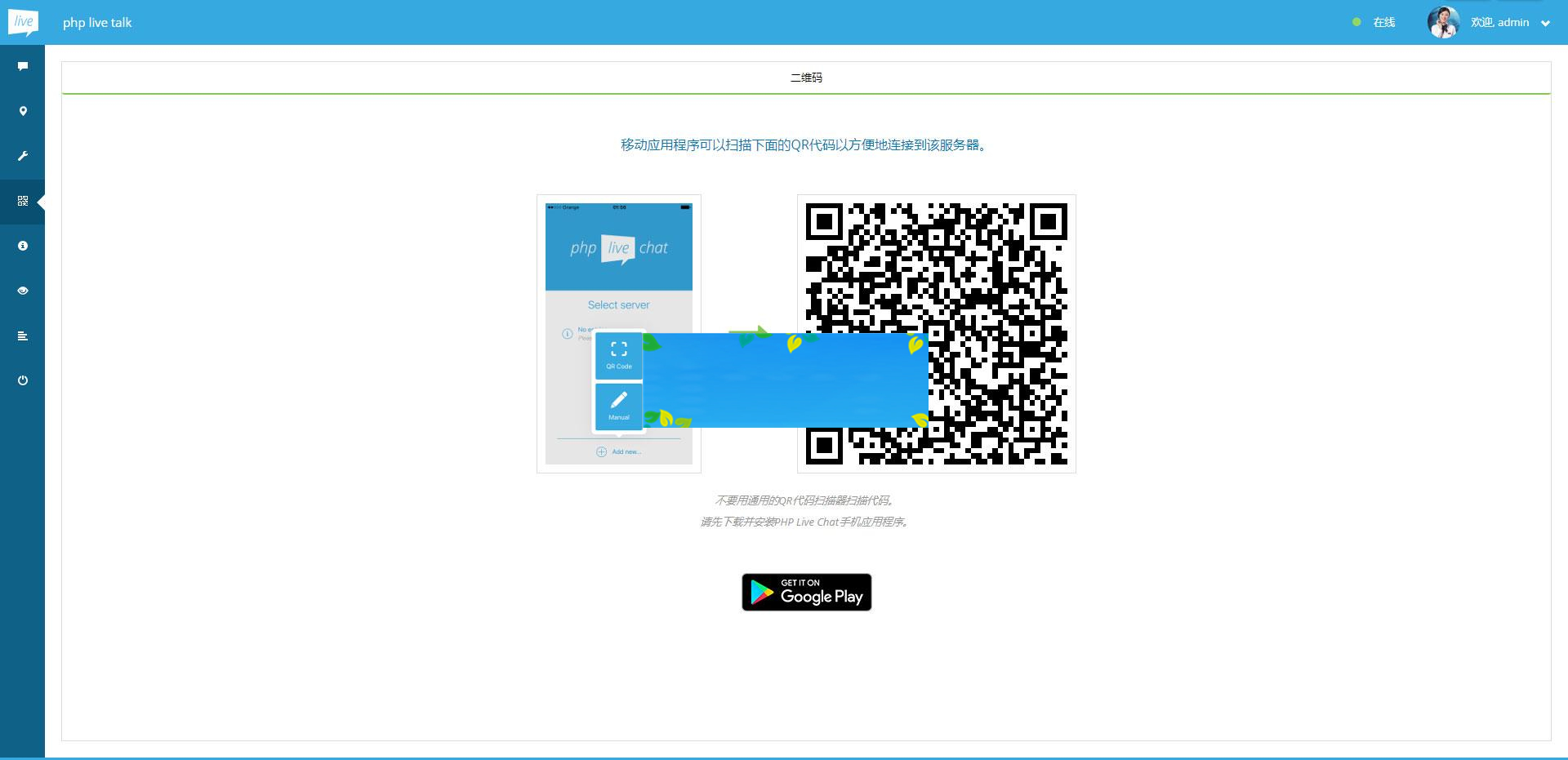 4、扫描“在线客服系统WEB管理端后台的QR码”进行绑定;