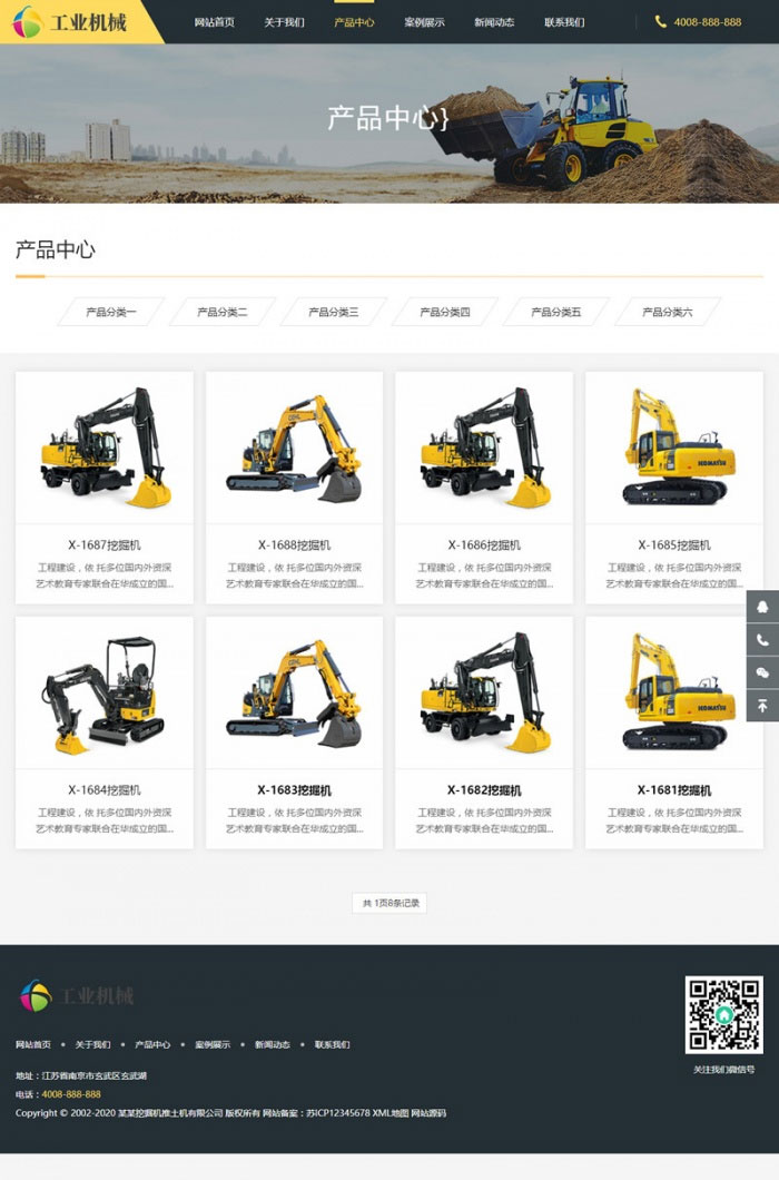 3、适用于推土机挖掘机网站模板、工矿机械设备网站源码;