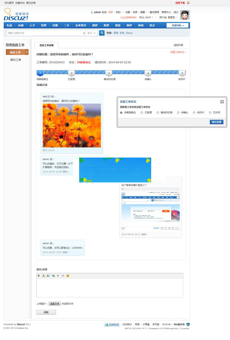 Discuz X3.2插件 工单管理系统 gbk utf8,价值500元