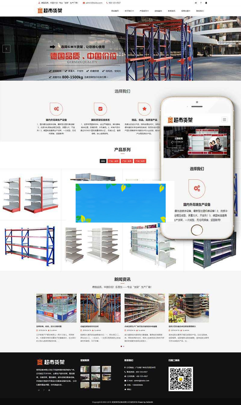 织梦最新内核开发的模板,该模板属于企业通用类、商用设备、超市货架、精品展架、仓储货架、精品展柜、超市设备、配套设施类企业都可使用,