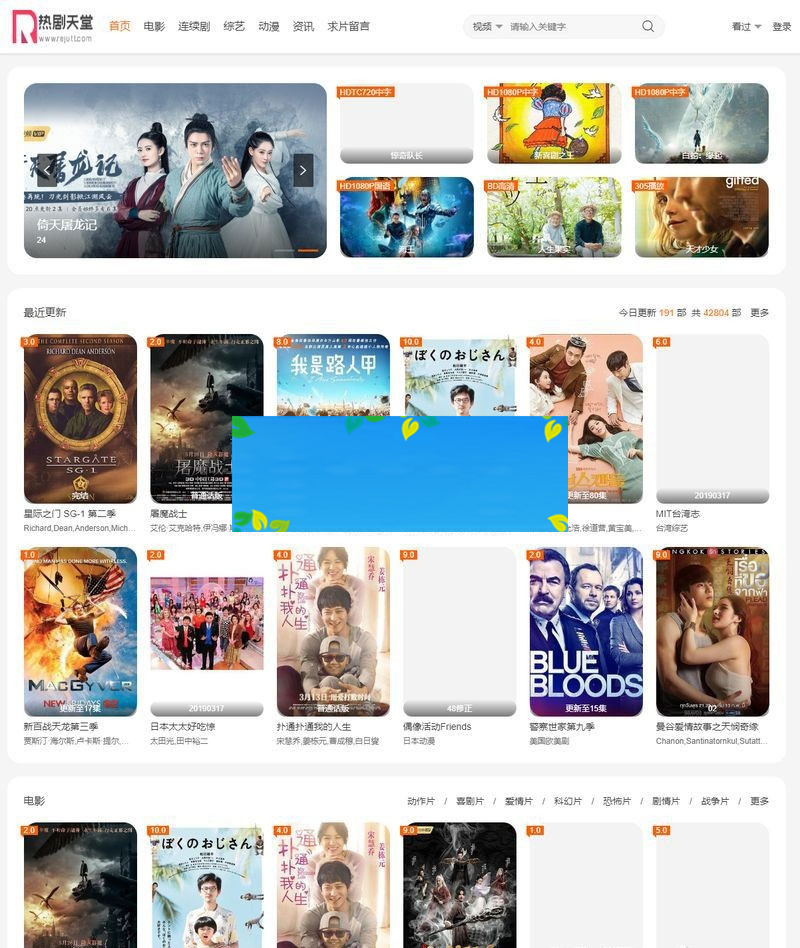 – 主题模块:视频 文章 专题 明星 用户中心 站内公告 影院热映