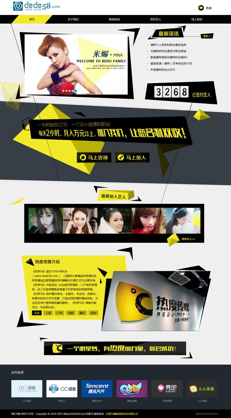 织梦最新内核开发的模板,该模板属于模特礼仪、明星艺人培训类网站使用;