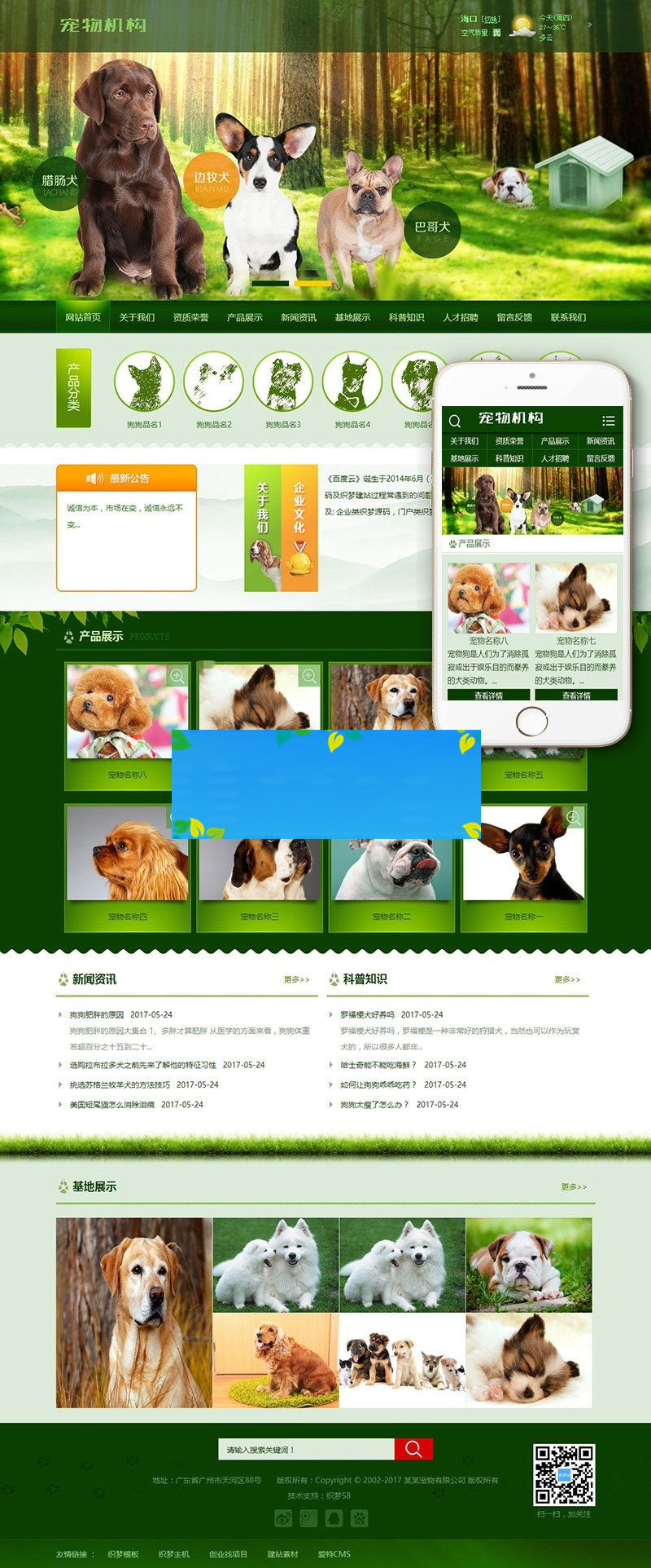 织梦dedecms绿色宠物狗宠物机构网站模板(带手机移动端)