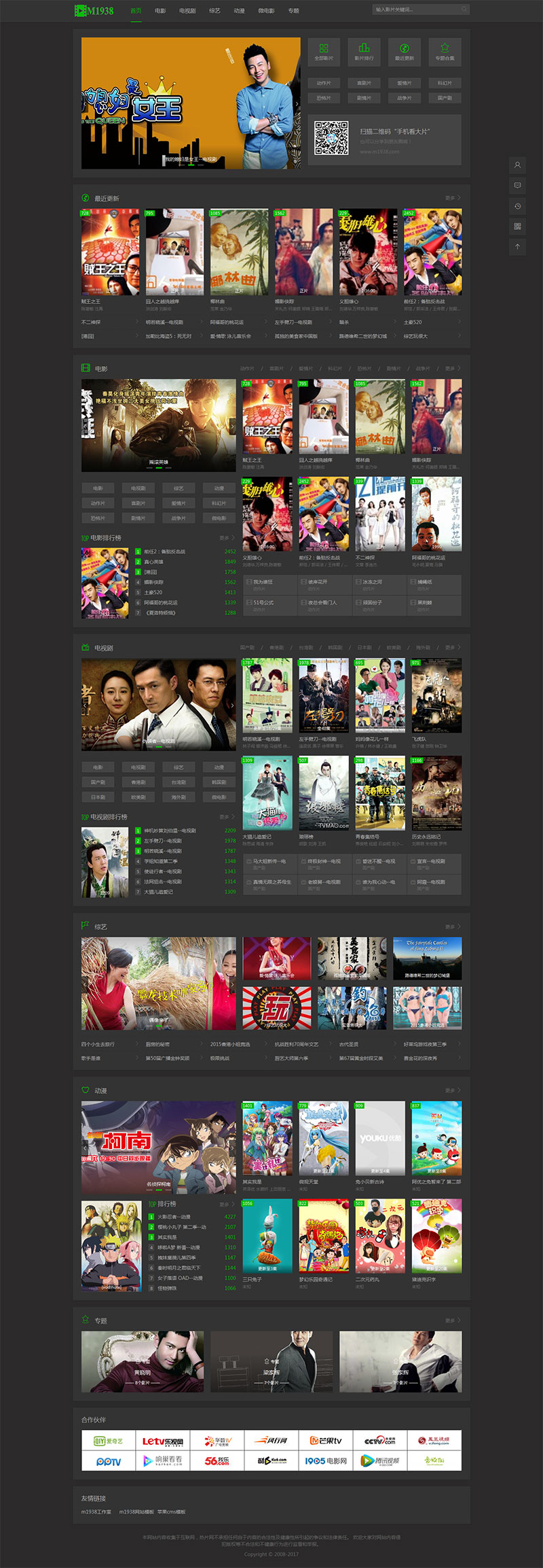 M1938工作室出品苹果CMS V10 PC+手机自适应模板N616风格,内附安装说明 声明:本站所有文章,如无特殊说明或标注,均为本站原创发布。任何个人或组织,在未征得本站同意时,禁止复制、盗用、采集、发布本站内容到任何网站、书籍等各类媒体平台。如若本站内容侵犯了原著者的合法权益,可联系我们进行处理。