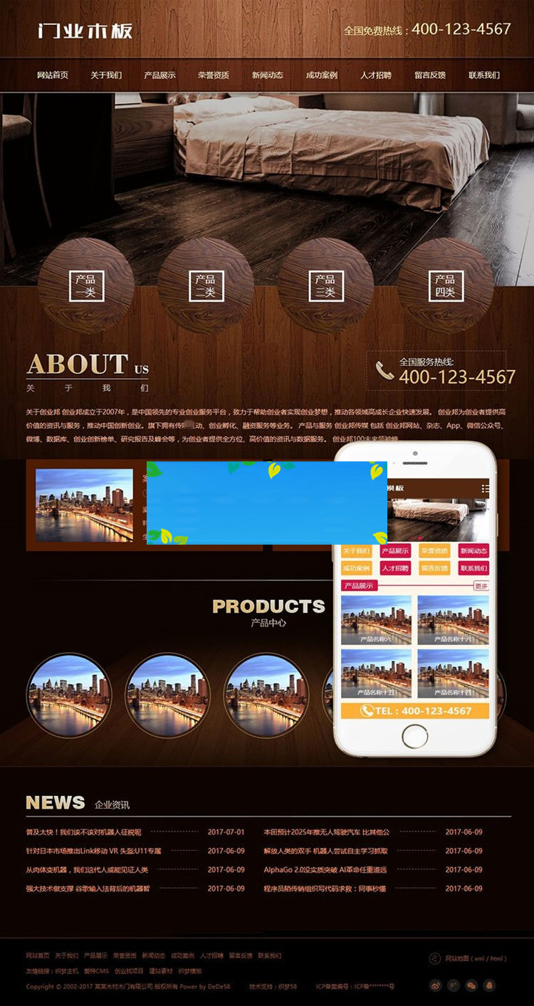 织梦dedecms木材木板门业公司网站模板(带手机移动端)