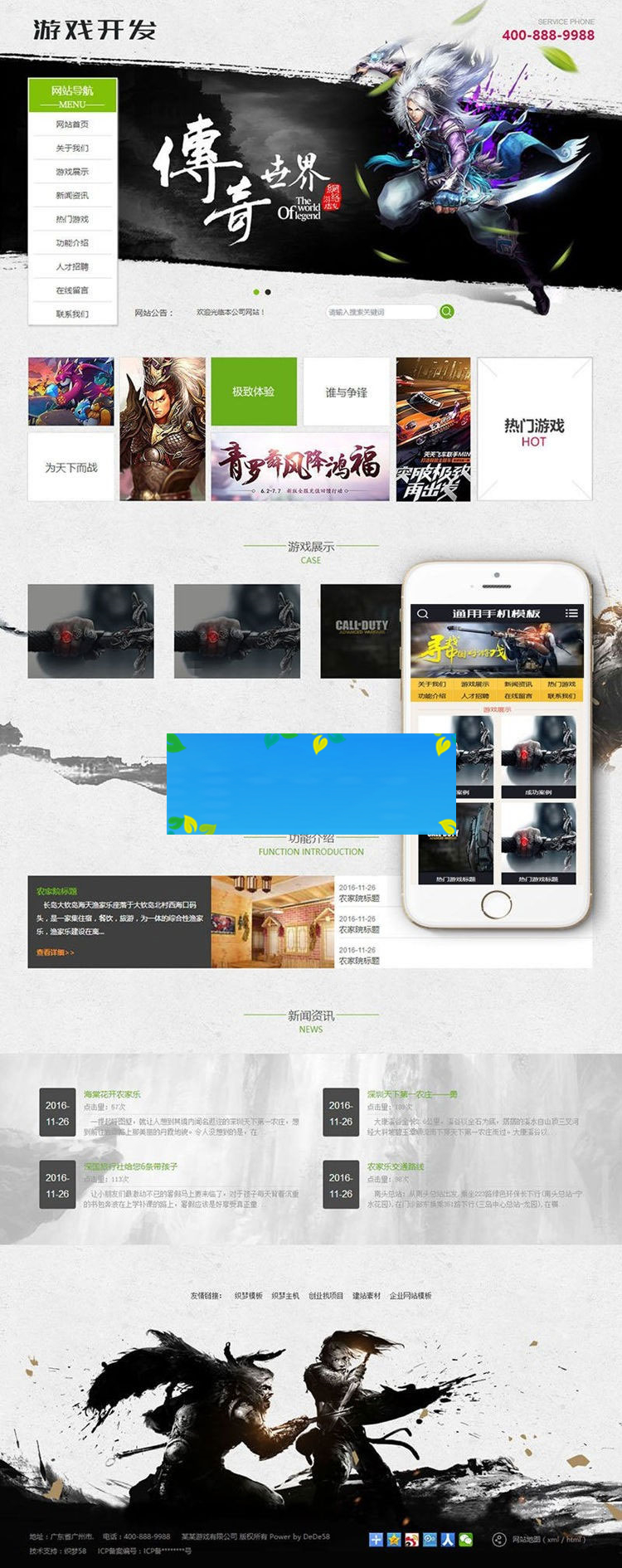织梦最新内核开发的模板,该模板属于企业通用类、传奇世界游戏开发、手机游戏开发类企业都可使用,