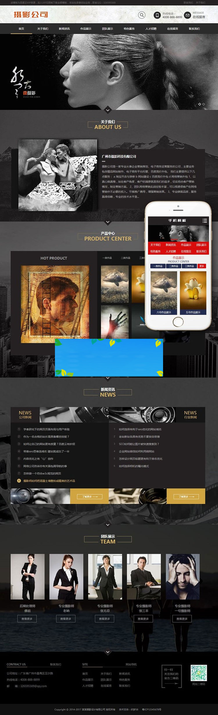 织梦dedecms黑色高端摄影设计公司网站模板(带手机移动端)