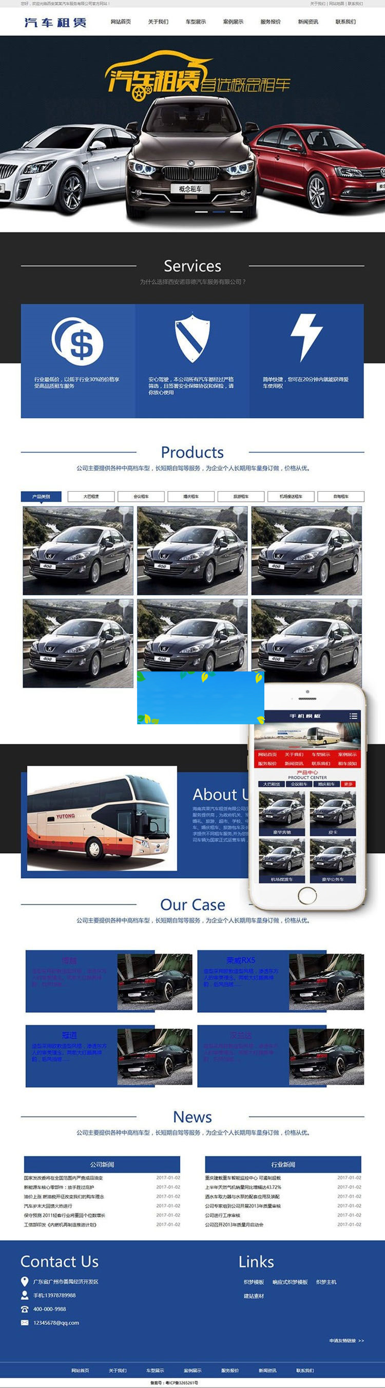 织梦最新内核开发的模板,该模板属于企业通用类、汽车租赁服务类企业都可使用,