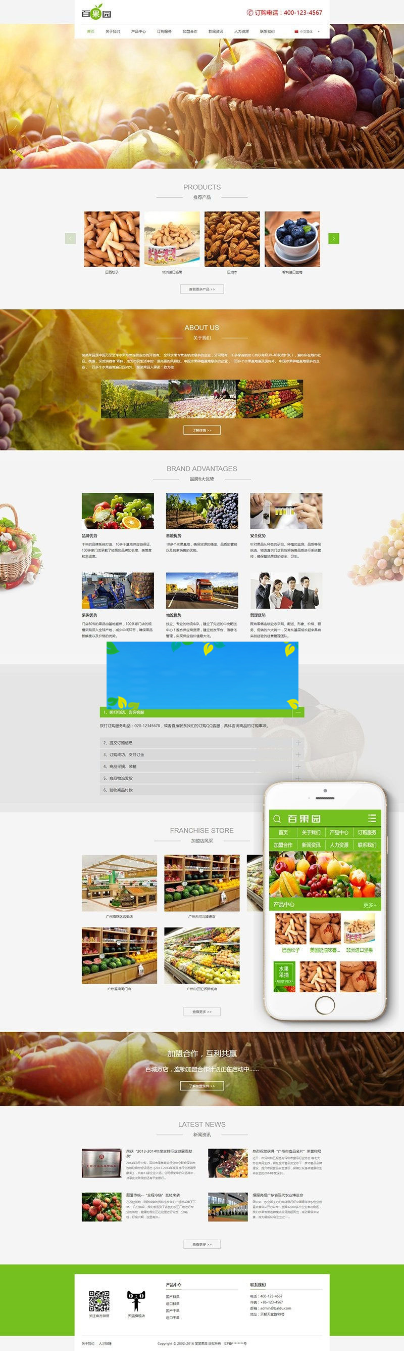 织梦最新内核开发的模板,该模板属于中英双语、水果蔬菜、果园订购类企业使用,一款适用性很强的模板,基本可以适合各行业的企业网站!