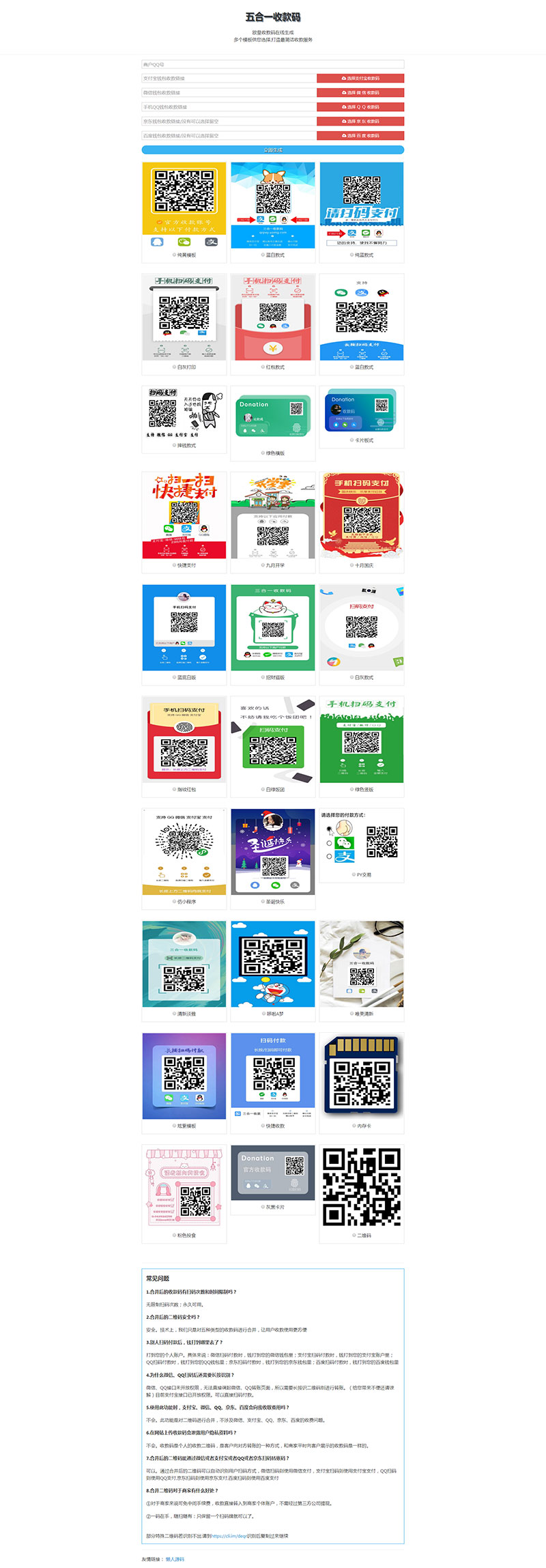 资源版五合一收款码在线生成网站源码HTML单页版多模板免安装