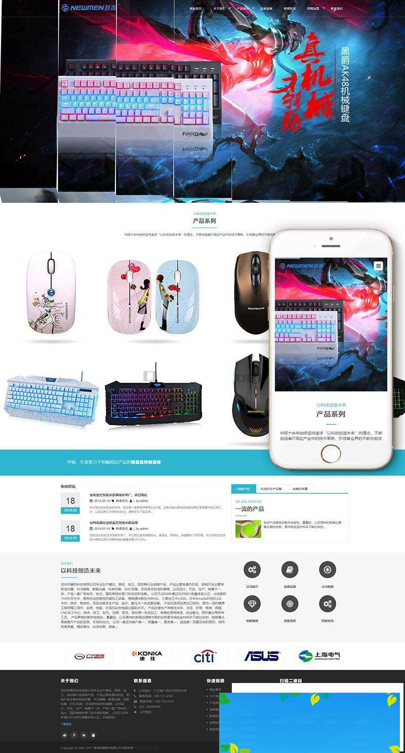 织梦最新内核开发的模板,该模板属于企业通用类、电脑配件、机箱、鼠标、键盘类企业都可使用,