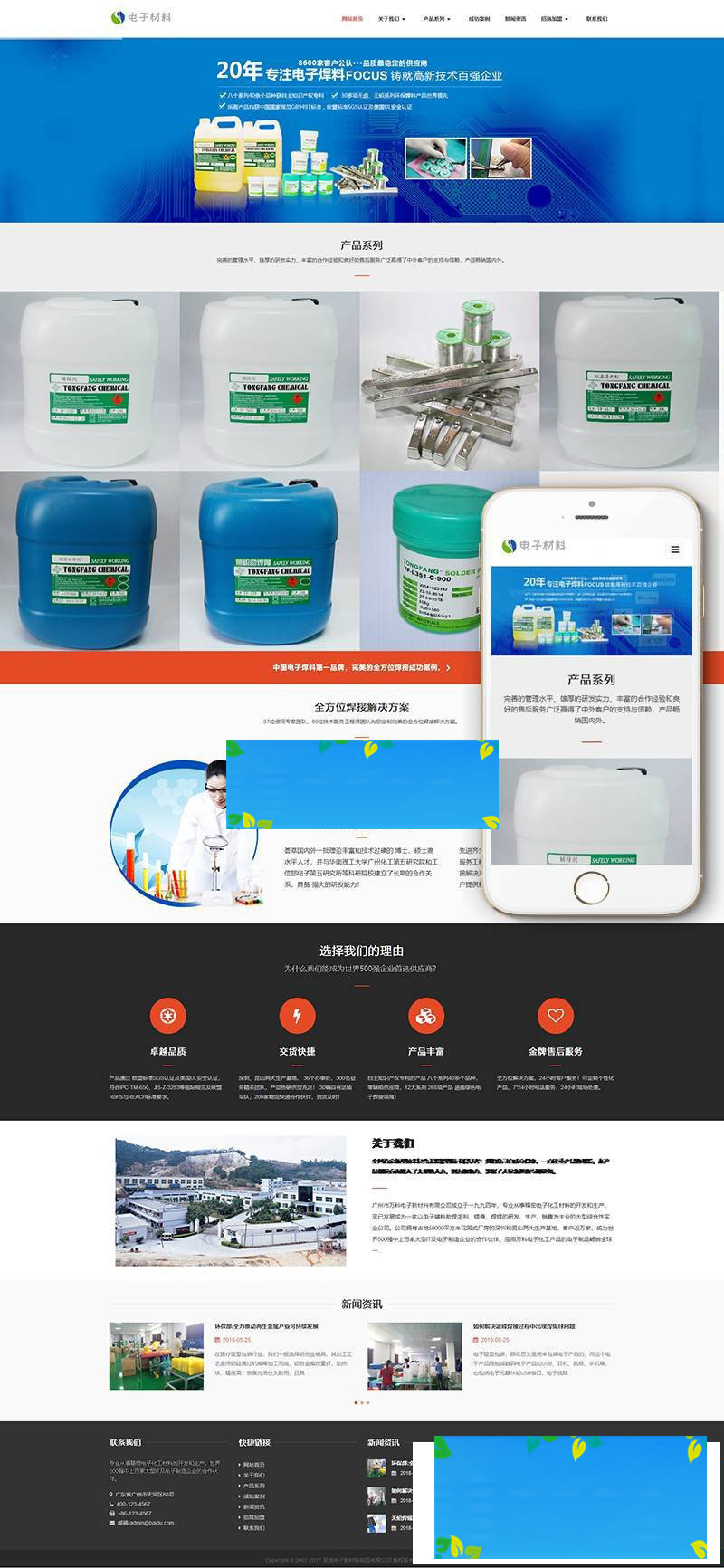 织梦dedecms响应式电子材料稀释剂公司网站模板(自适应手机移动端)