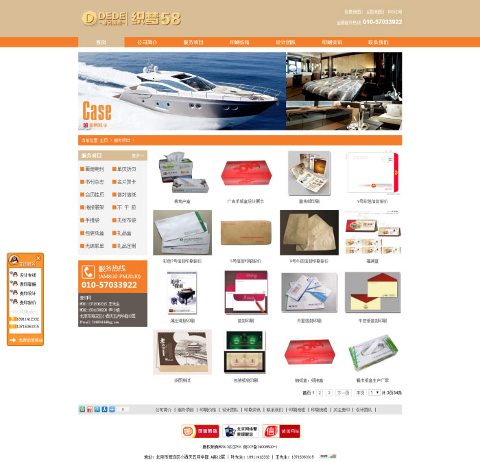 适合印刷,产品包装类企业网站使用,简单便捷,