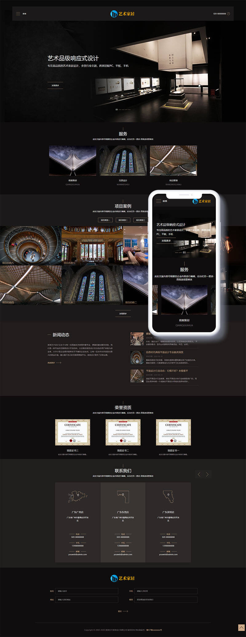 响应式艺术家居设计类网站织梦模板(自适应手机端)+PC+wap+利于SEO优化